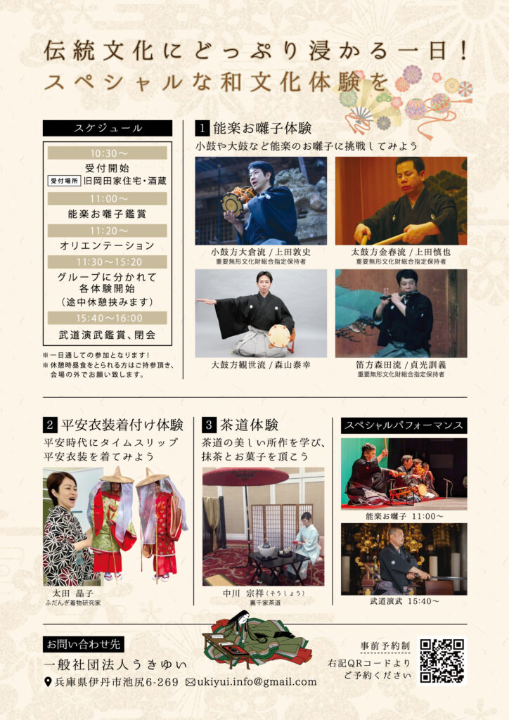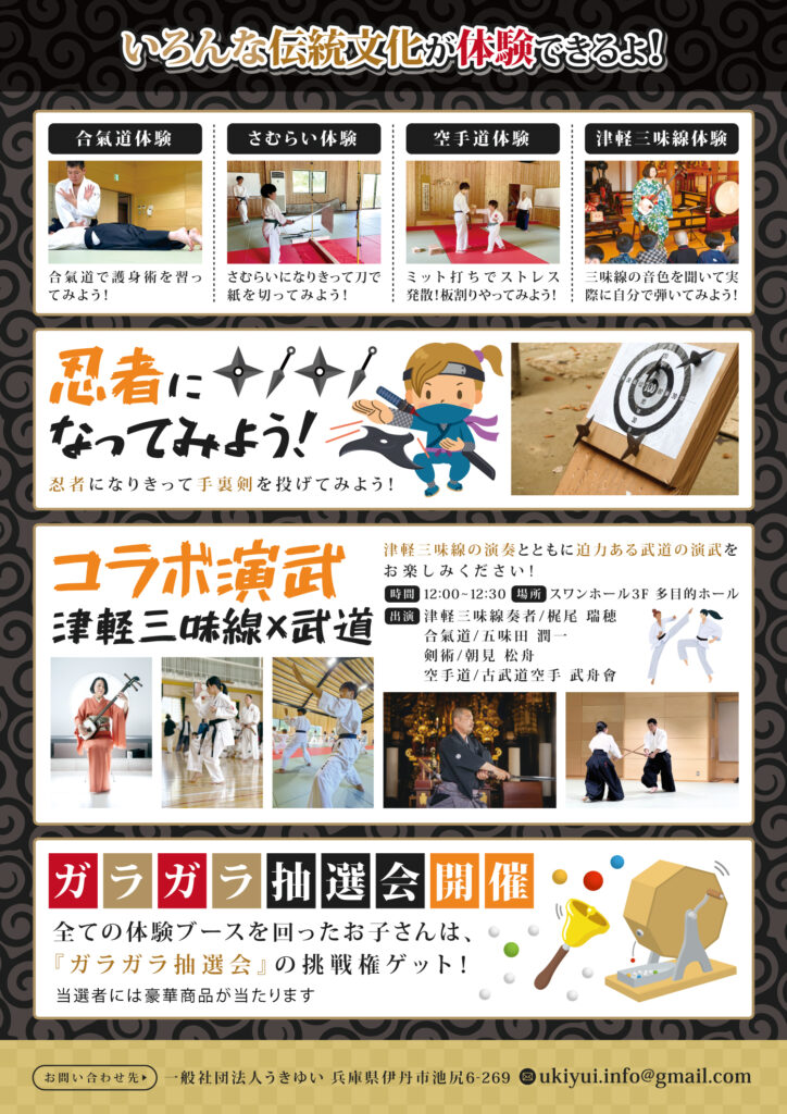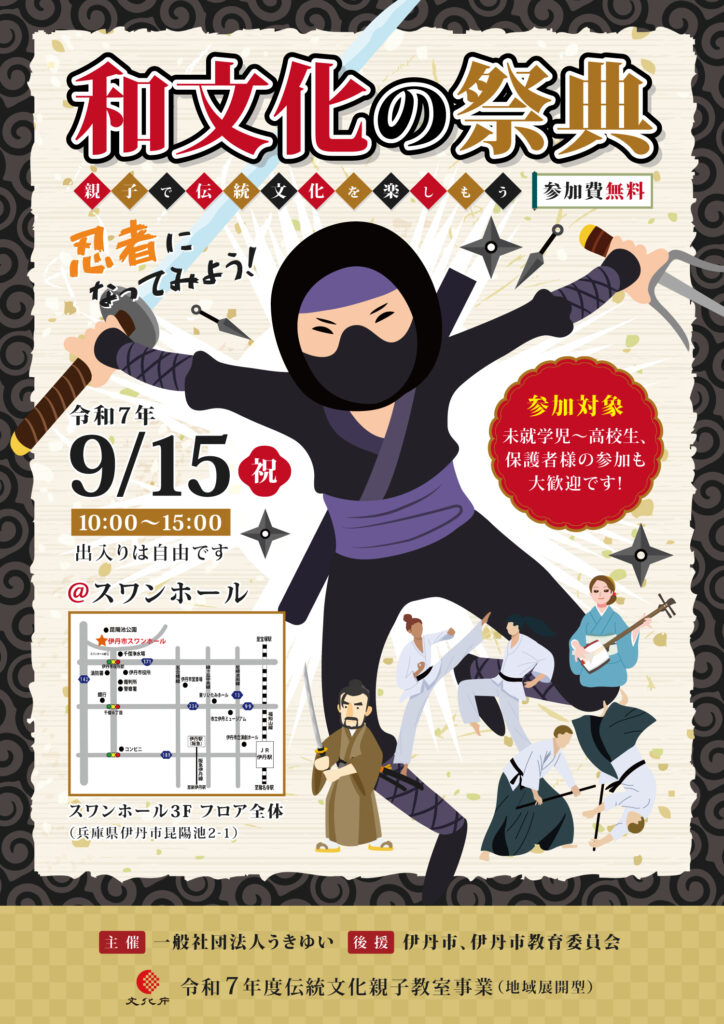 和文化の祭典2025では、「武道」「和楽器」「能楽」「茶道」「着物着付け」が体験できるよ!!